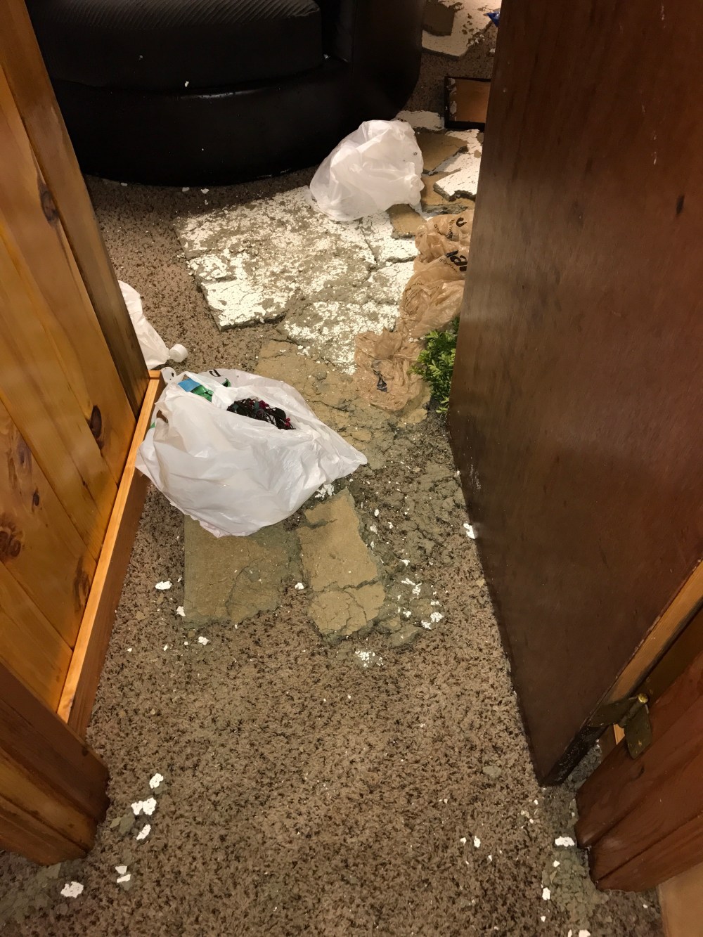 I spent the morning in the bedroom with the pups, under the blanket. Joey was with the plumber and the young man for a few hours. The plumbers apprentice said he had never in his life, never not seen water upstairs with this amount of broken pipes, all the water remained downstairs and in reality, there was not a big amount. This got me thinking, no water at all on the first floor where all the bedrooms, living space was. This was odd.